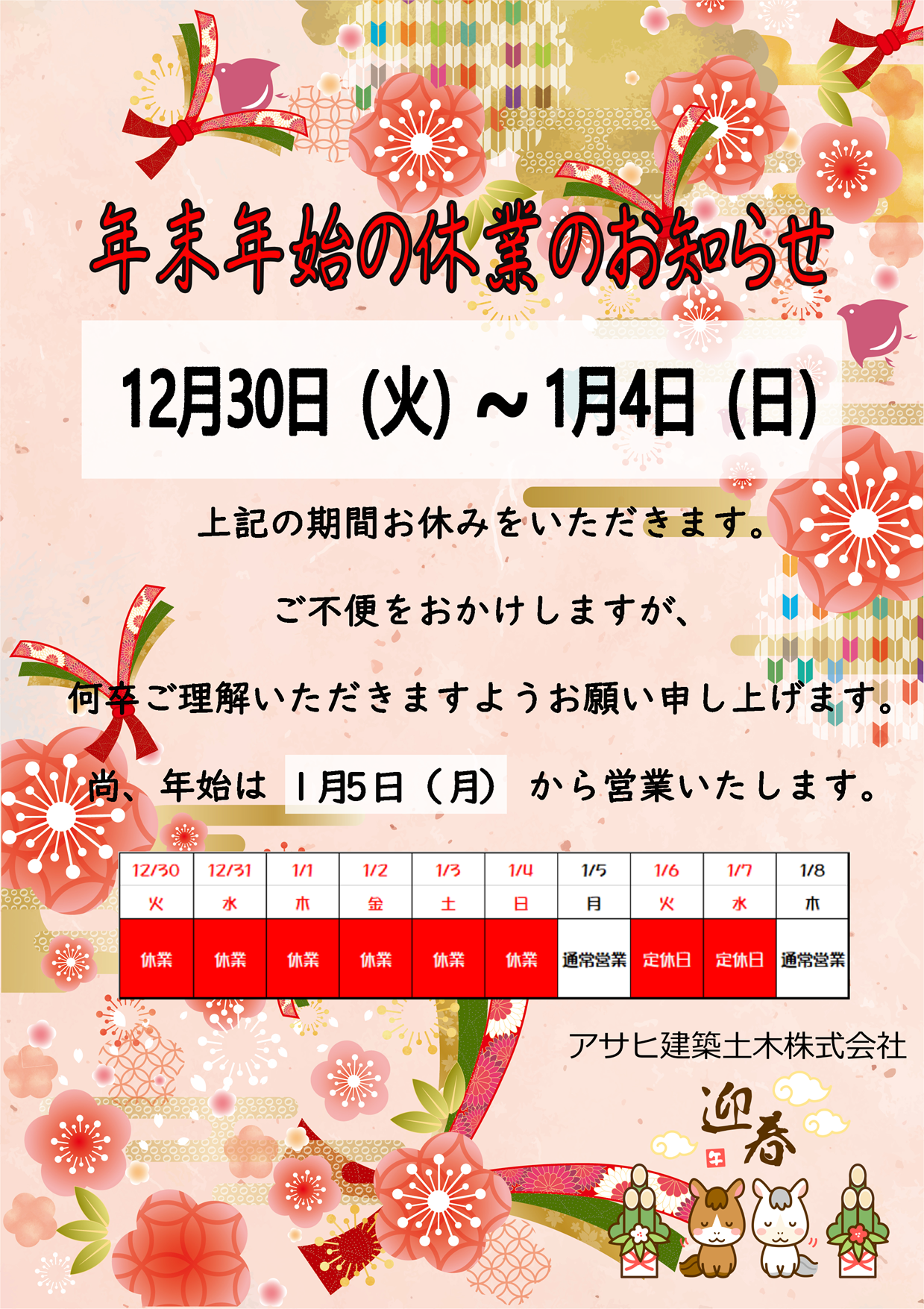 冬季休業のお知らせ